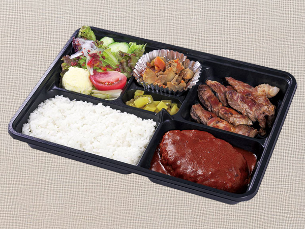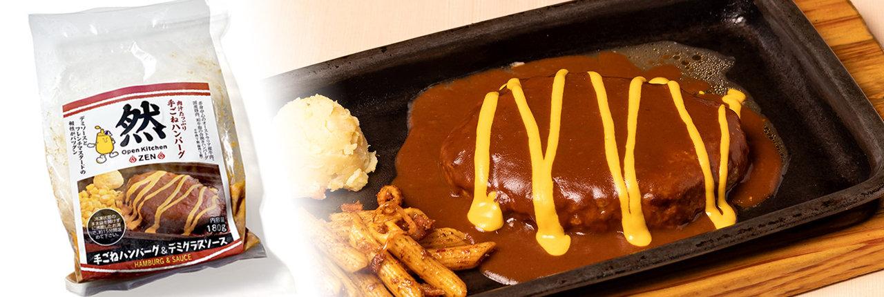 オープンキッチン然では、お持ち帰り用ハンバーグとハンバーグカレー(いずれも冷凍)を店内販売しています。