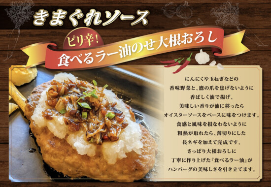 こだわりのステーキやハンバーグを、自慢のソースと共にお召し上がり下さい