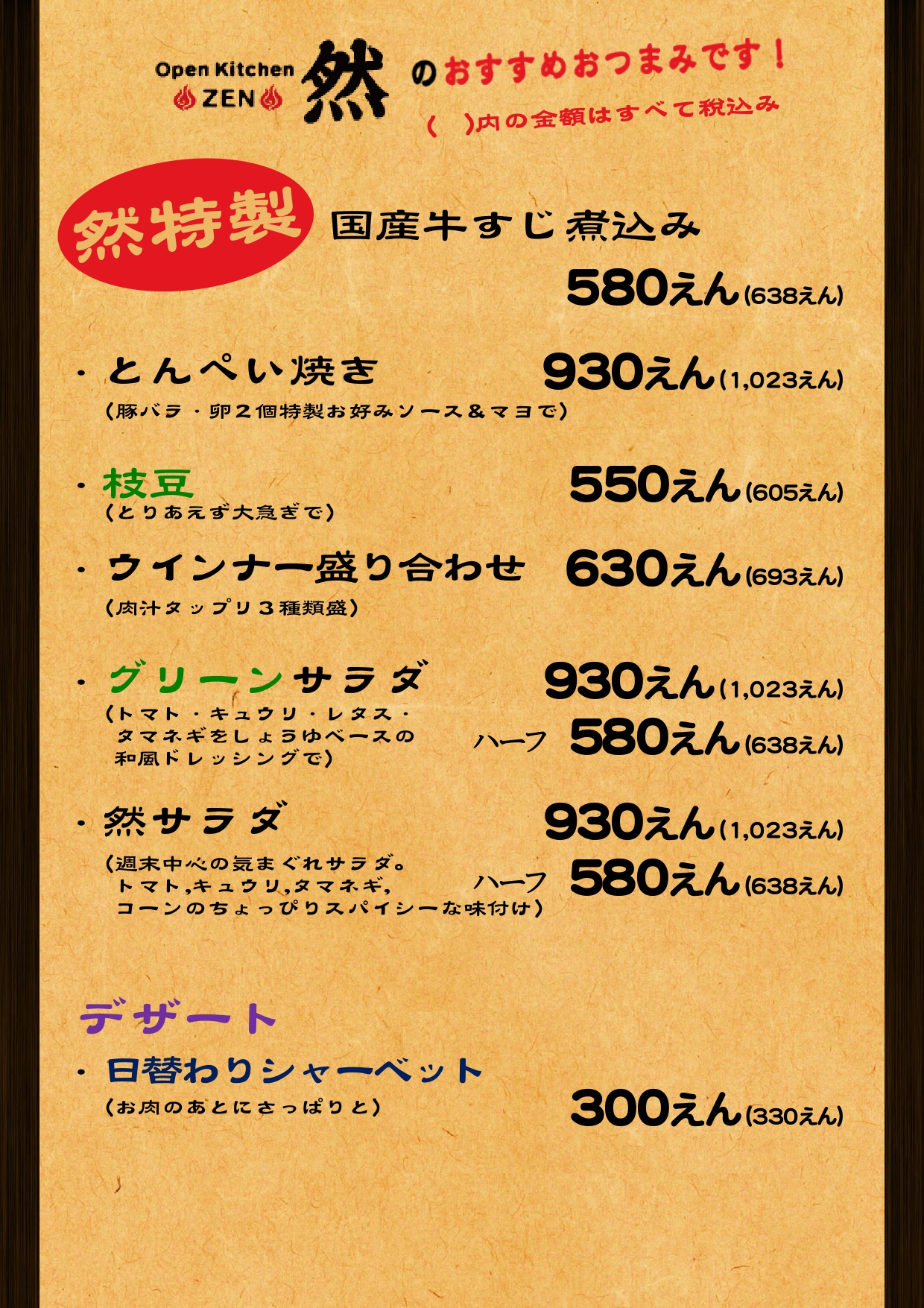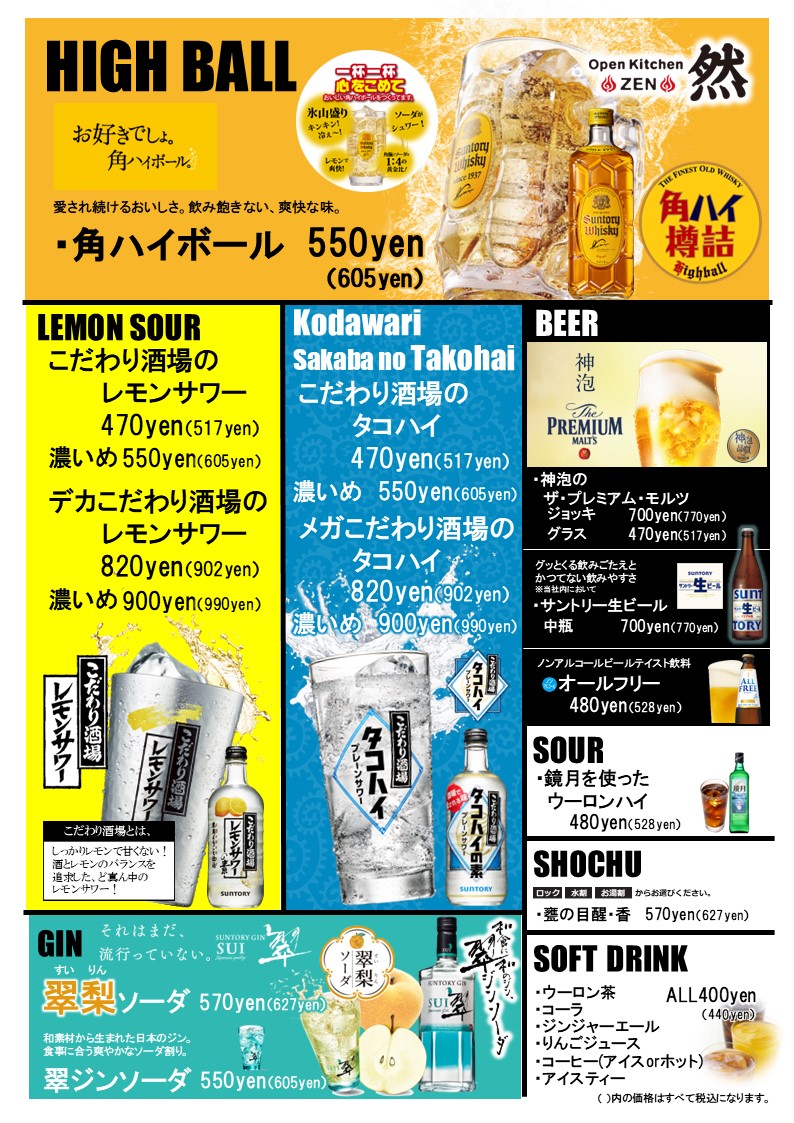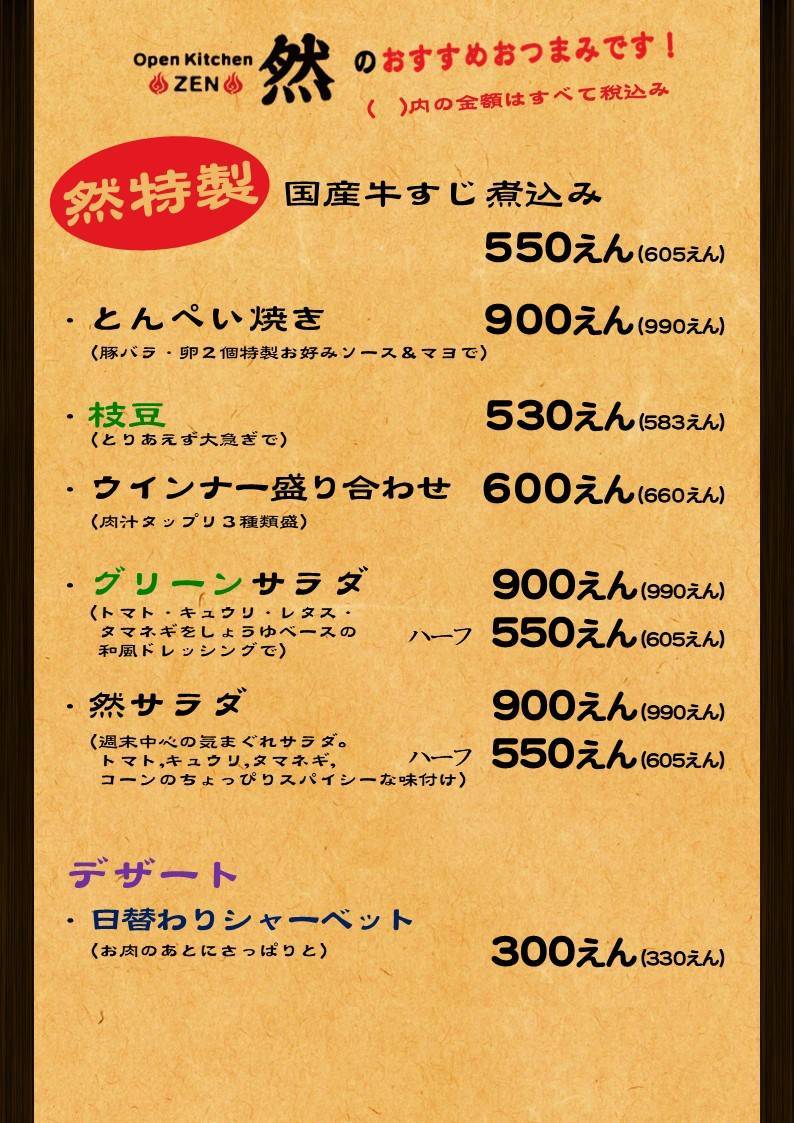 ディナーメニュー